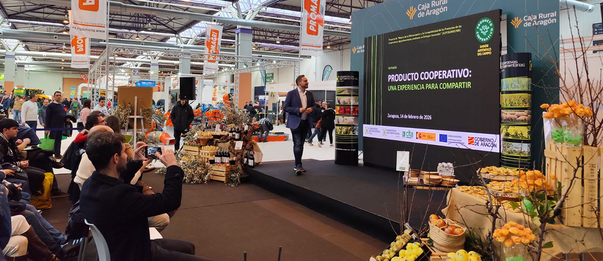 En la primera parte de la jornada, de la mano de Cooperativas Agroalimentarias de Aragón, se habló sobre el cooperativismo agroalimentario de esta comunidad y se presentó la marca producto cooperativo y los valores que la sustentan: origen, calidad, unión, democracia, sostenibilidad, empleo rural, impacto social, familias… Además, de facilitar información sobre los exigentes parámetros que las entidades deben cumplir para pertenecer a ella, algo que supone para el consumidor una garantía tanto en lo alimentario como en el impacto social positivo que genera.
