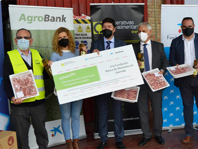 Cooperativas Agro-alimentarias, Fundación “la Caixa” y CaixaBank donan aceite de oliva virgen y cordero al Banco de Alimentos de Granada