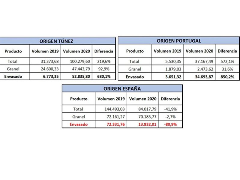 Los datos de las declaraciones de los operadores del sector oleícola a la Agencia de Información y Control Alimentario, AICA, correspondi ...