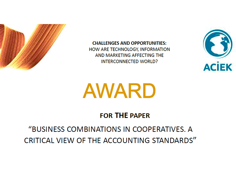 El trabajo titulado “Business combinations in cooperatives. A critical view of accounting standards” que ha sido galardonado es un desarrollo del trabajo realizado en 2019 por la Cátedra Cooperativas Agroalimentarias sobre procesos de integraci ...