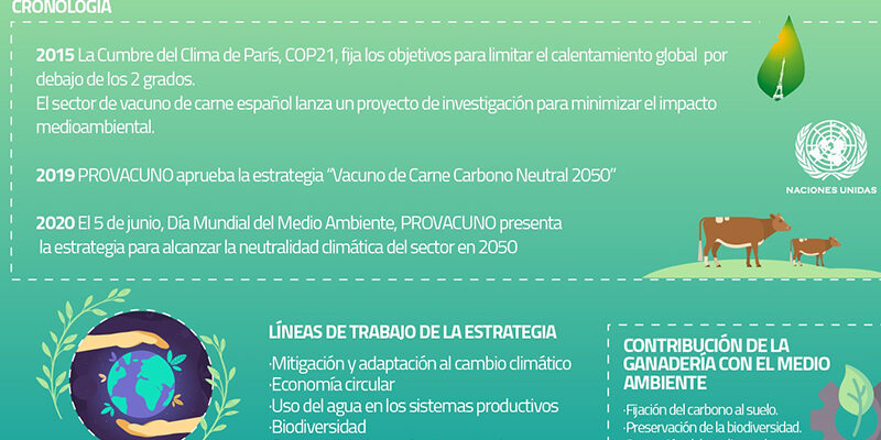 PROVACUNO, la Organización Interprofesional de la Carne de Vacuno, ha lanzado la estrategia Vacuno de Carne Carbono Neutral 2050 con motivo del Día Mundial del Medio Ambiente, que se celebra hoy, 5 de junio, y con el objetivo de alcanzar la neutralidad climática del sector en 2050. Una iniciativa aprobada en 2019 por los órganos directivos de la organización para comprometerse en la reducción de emisiones y la mejora de la sostenibilidad ambiental.